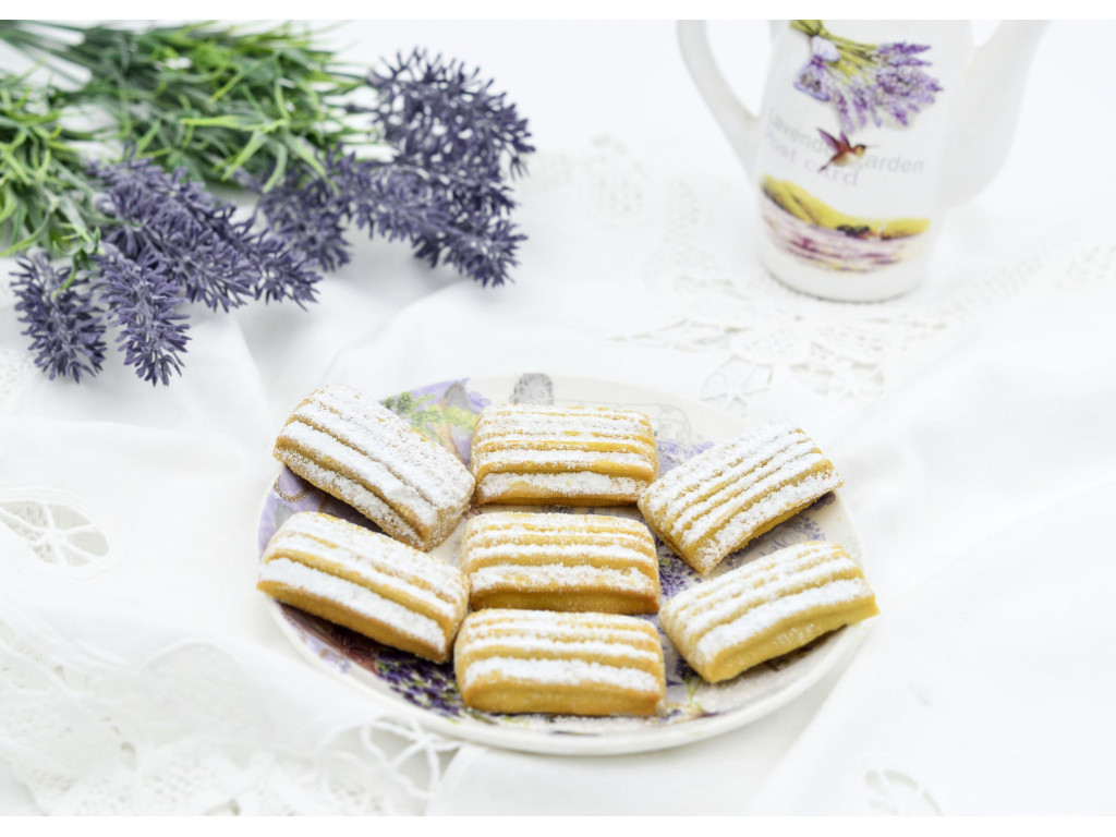 Ingrediente: Faina de grau, zahar, glucoza lichida, ulei de palmier, amidon din porumb, agenti de afanare: bicarbonat de amoniu si bicarbonat de sodiu, glicerina, sare iodata, conservant alimentar: sorbat de potasiu, vanilina ,aroma.